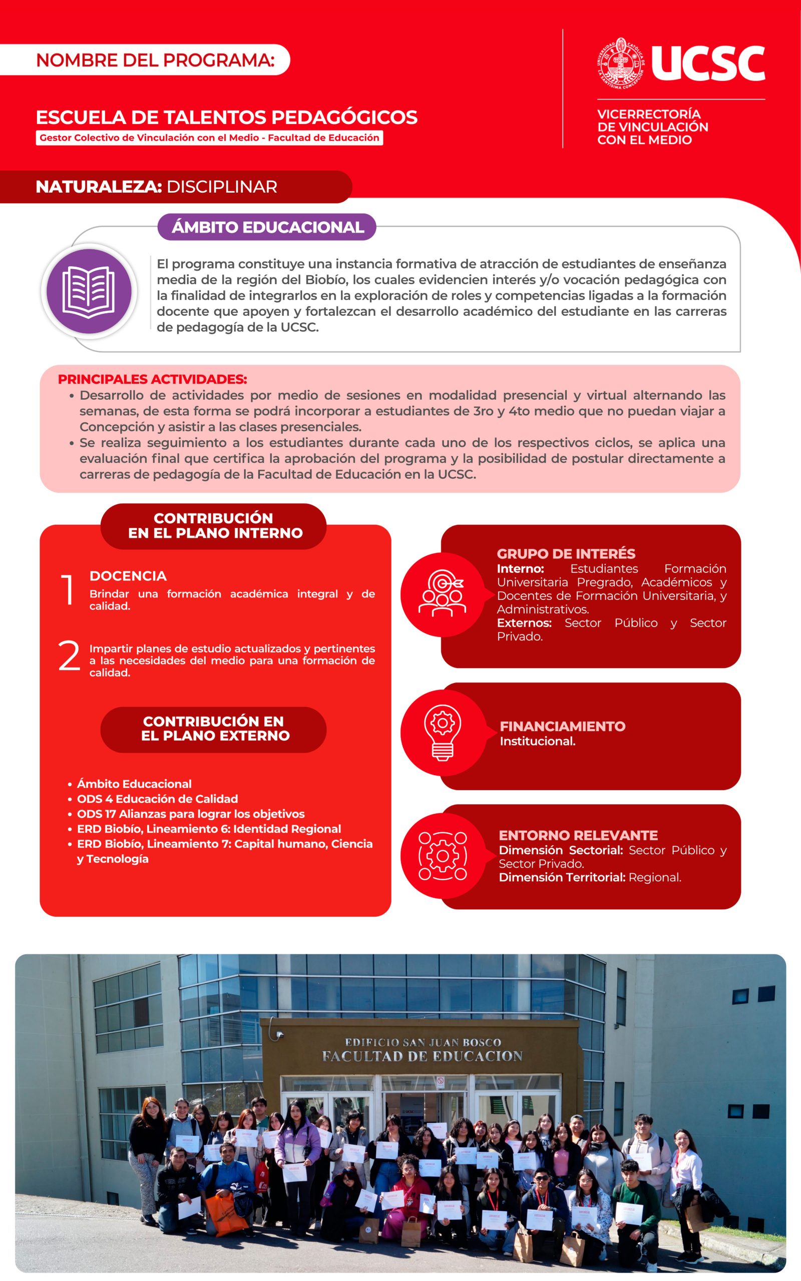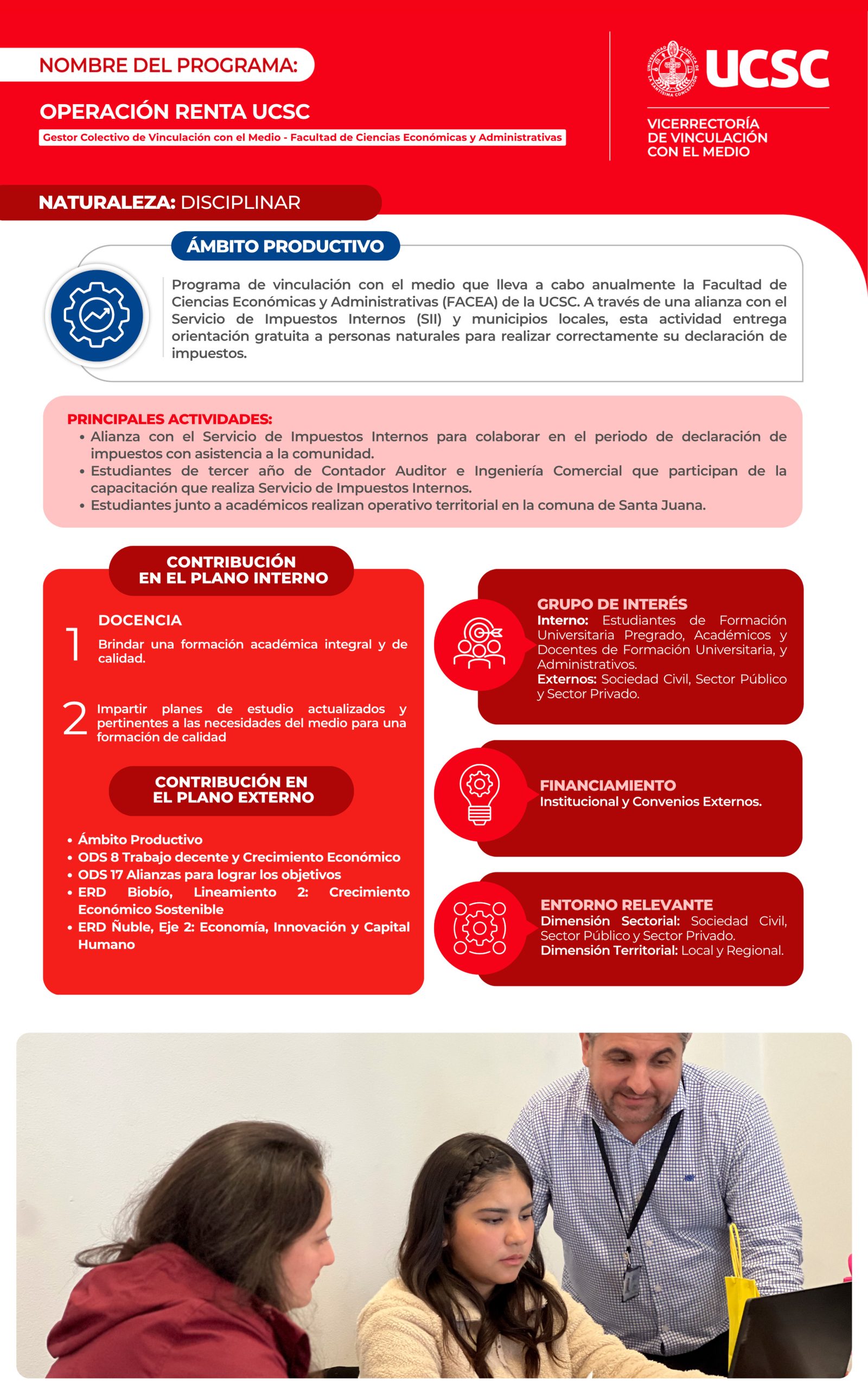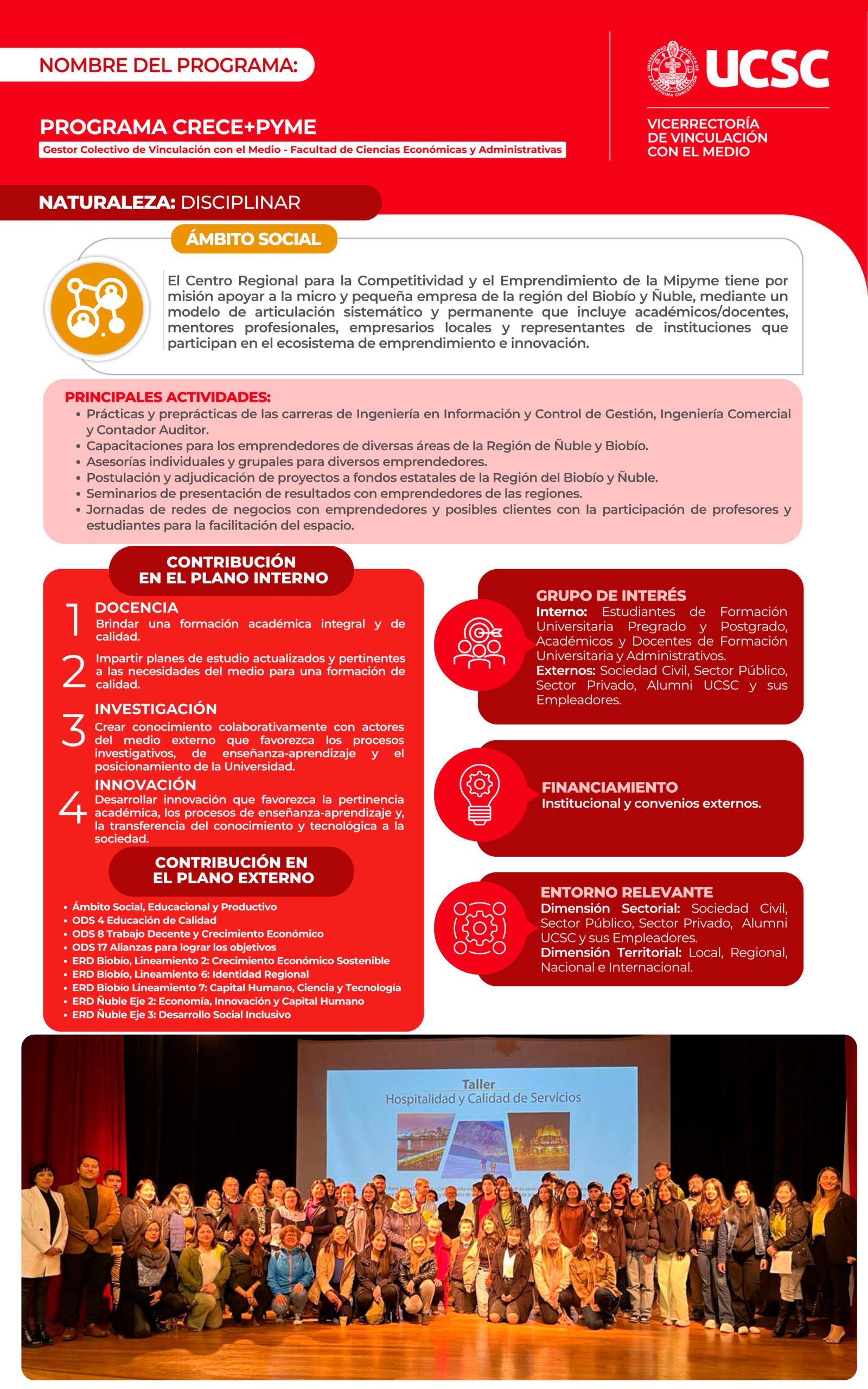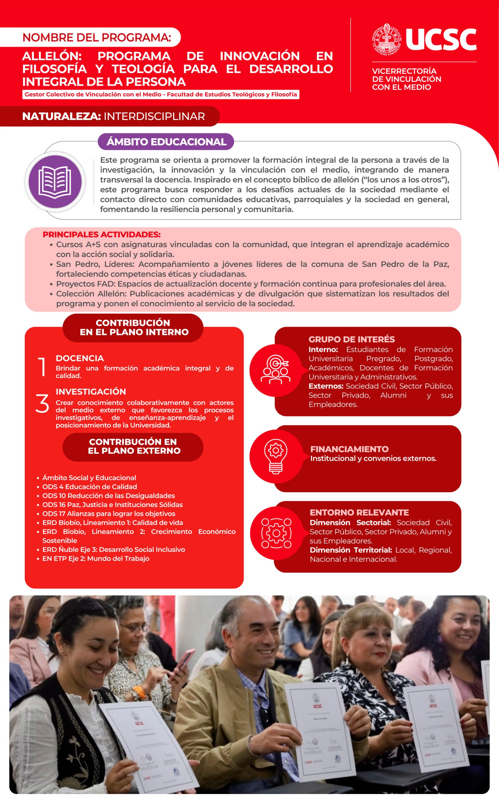 Los programas son acciones de vinculación con permanencia en el tiempo, los cuales se desarrollan en colaboración con el medio externo, respondiendo a los requerimientos del entorno relevante de la Universidad, generando beneficio mutuo.